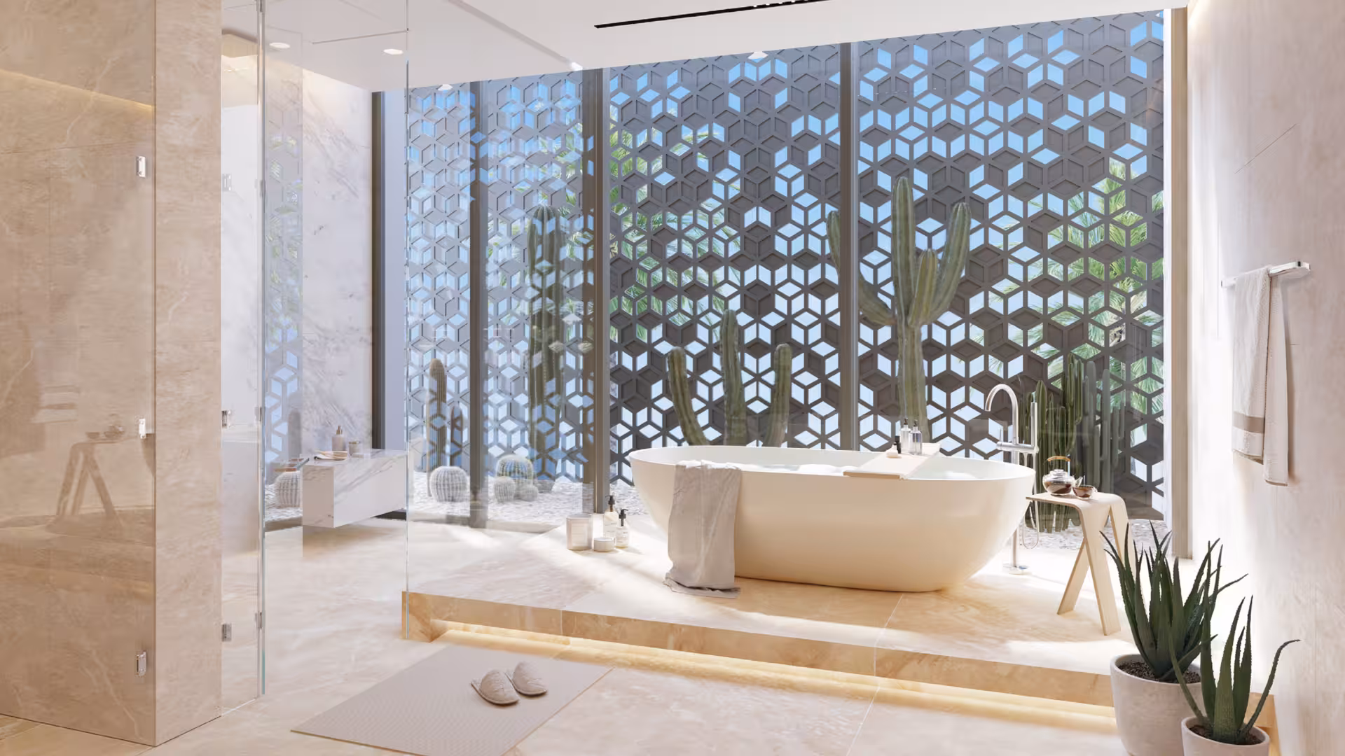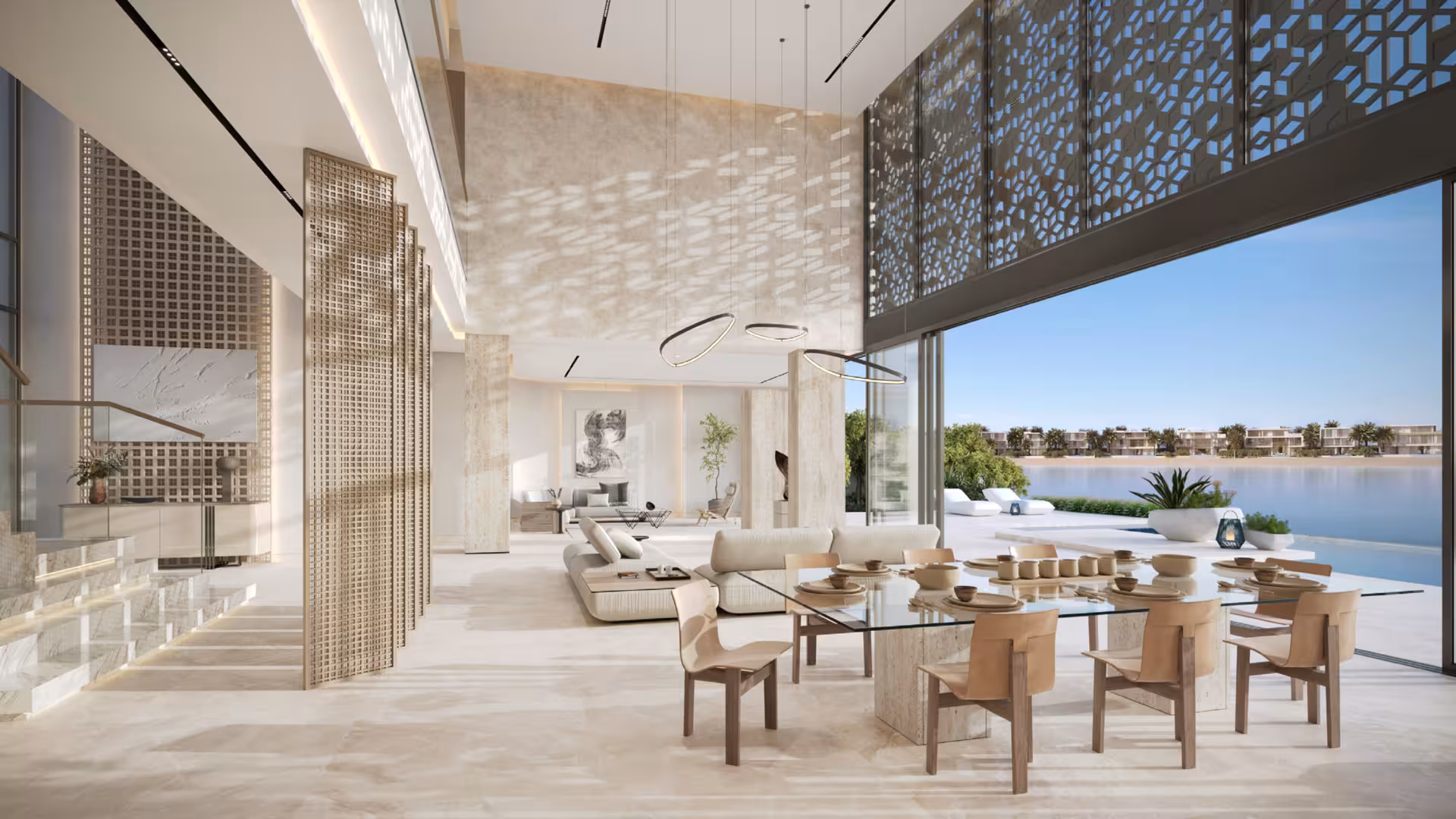 Drawing inspiration from its namesake, Sunset Mirage Villa embodies the ethereal beauty of twilight, where golden light dances across desert sands and calm waters. Its warm, radiant palette and fluid design capture the poetry of the setting sun. Expansive living spaces transition seamlessly to the outdoors, inviting a harmonious blend of comfort and nature. This villa offers an atmosphere of refined serenity - a true expression of desert elegance and coastal grace.